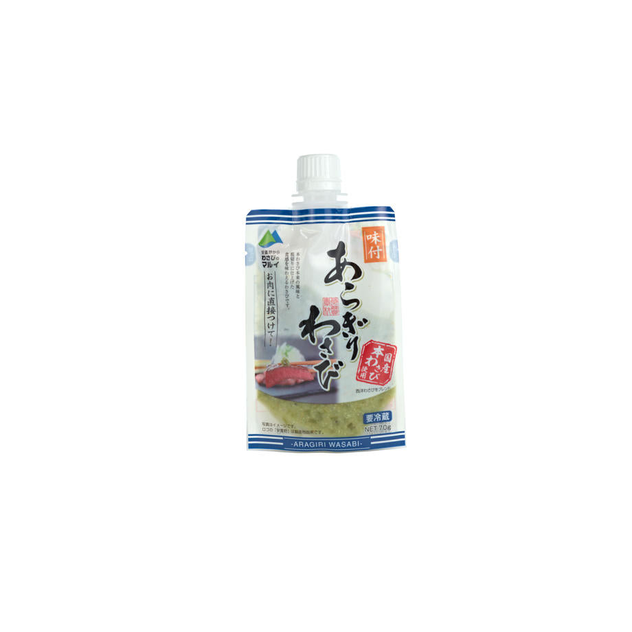 塩蔵本わさび(本わさび(中国、安曇野産)、食塩)、複合調味液(糖類(ぶどう糖果糖液糖、水あめ)、醤油、食塩)、還元水飴、西洋わさび加工品、植物油脂、食塩、食物繊維/調味料(アミノ酸等)、環状オリゴ糖、増粘剤(キサンタン)、酸味料、香料、着色料(紅花黄、クチナシ)、(一部に小麦・大豆を含む)
